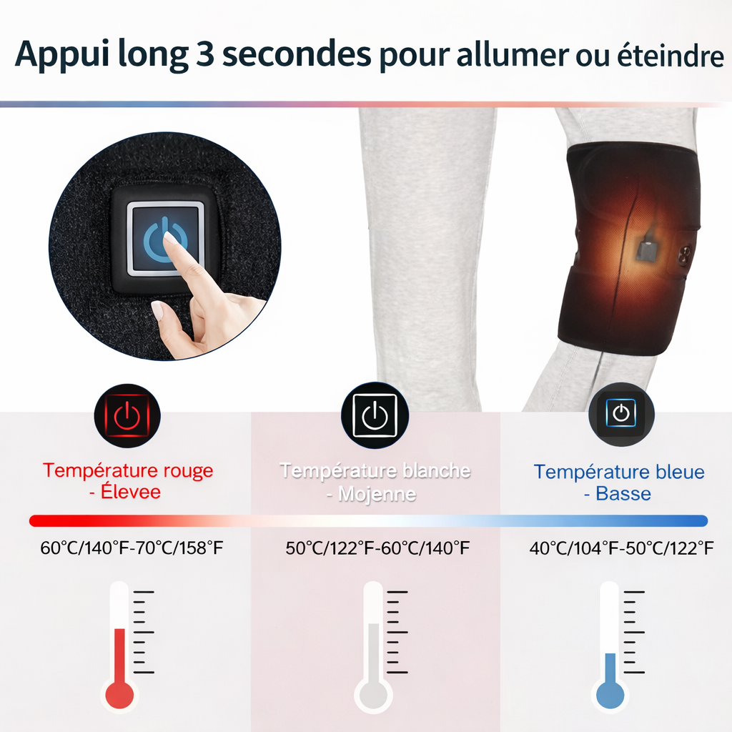 Dotée de trois niveaux de température, la genouillère vous permet de régler l’intensité de la chaleur selon vos besoins, que ce soit pour un moment de relaxation, après une activité physique ou lors des journées froides.
